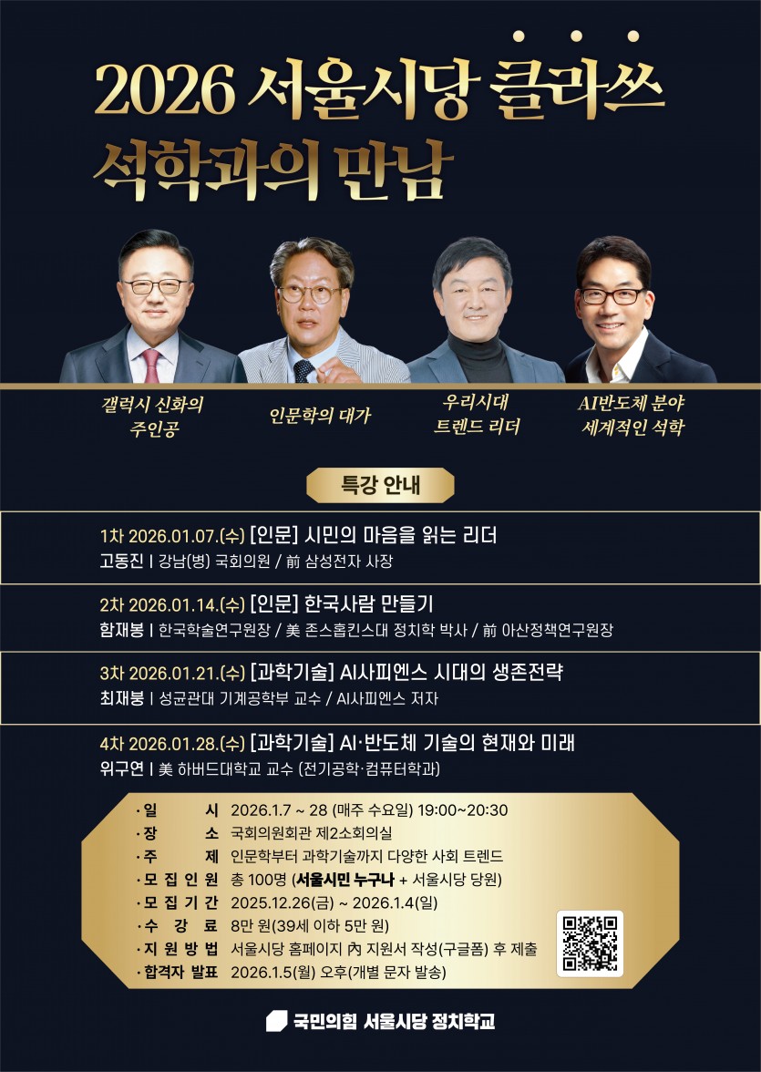 2026 서울시당 클라쓰 석학과의 만남 특강 모집 안내