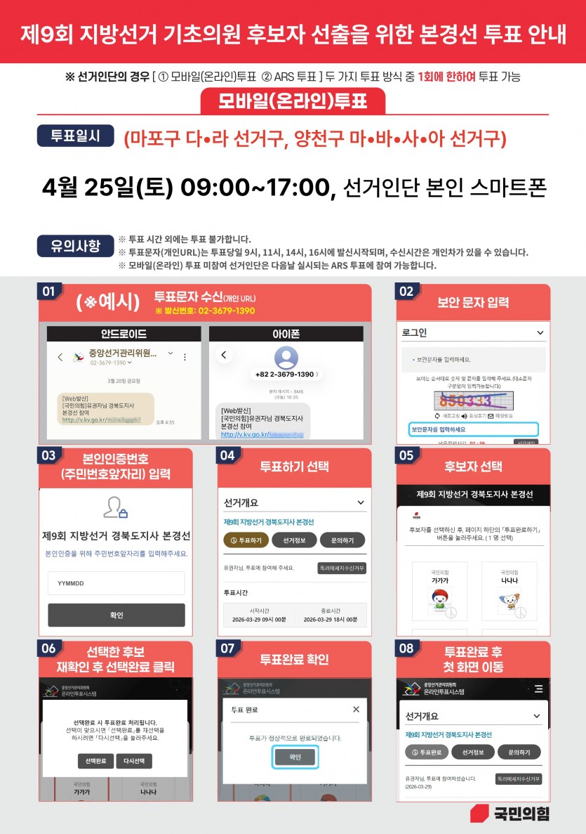제9회 지방선거 서울지역 기초의원 후보자 선출을 위한 본경선 투표 안내