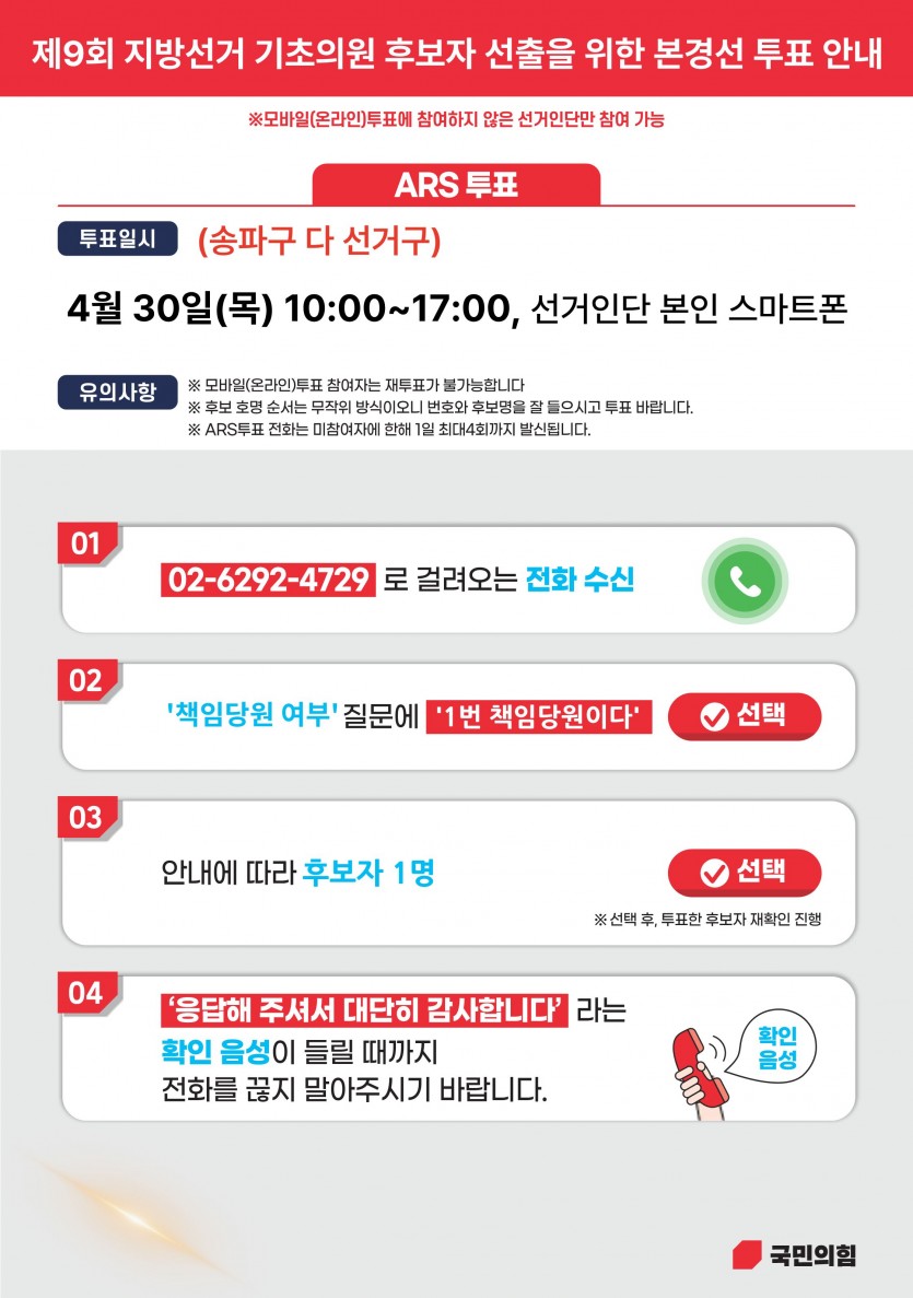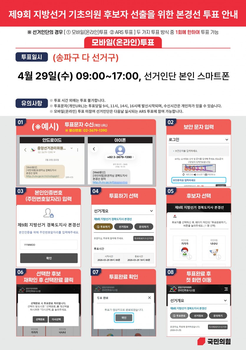 제9회 지방선거 서울 기초의원(송파구 다)후보자 선출을 위한 본경선 투표 안내