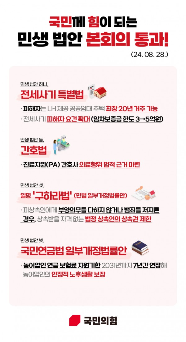 국민께 힘이 되는 민생법안 본회의 통과(24.8.28)