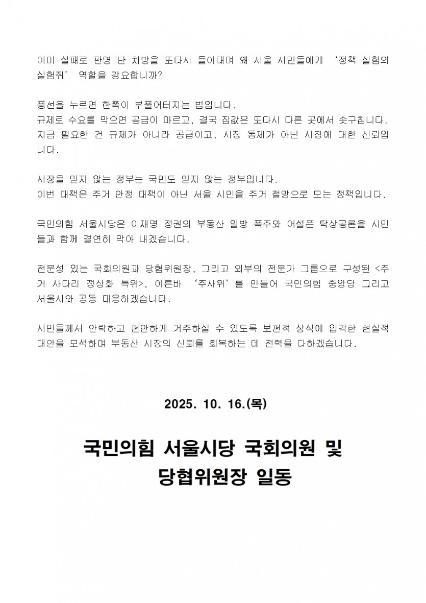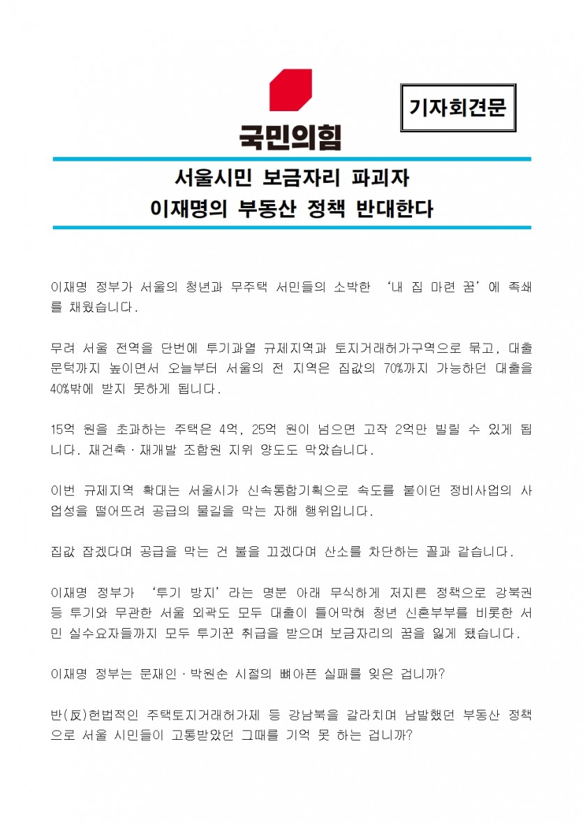 [기자회견] 서울시민 보금자리 파괴자 이재명의 부동산 정책 반대한다