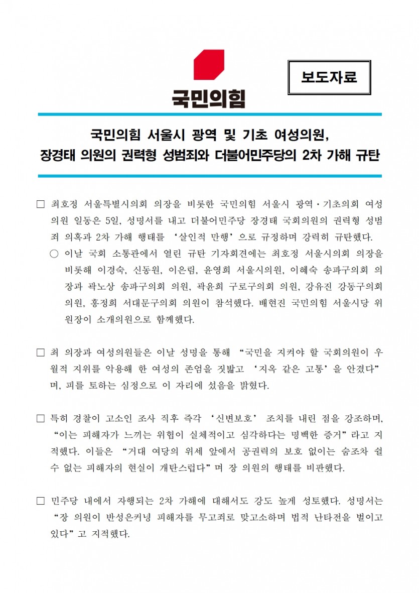 장경태 의원의 권력형 성범죄와 더불어민주당의 2차 가해 규탄 기자회견