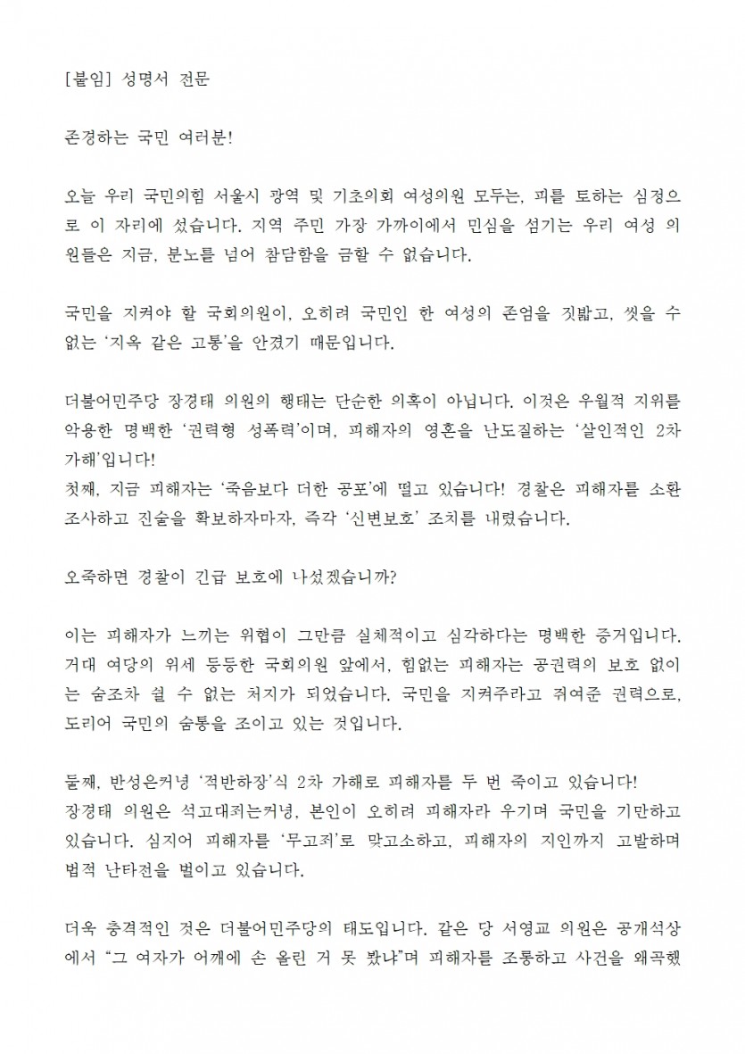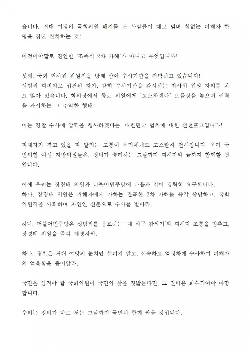 장경태 의원의 권력형 성범죄와 더불어민주당의 2차 가해 규탄