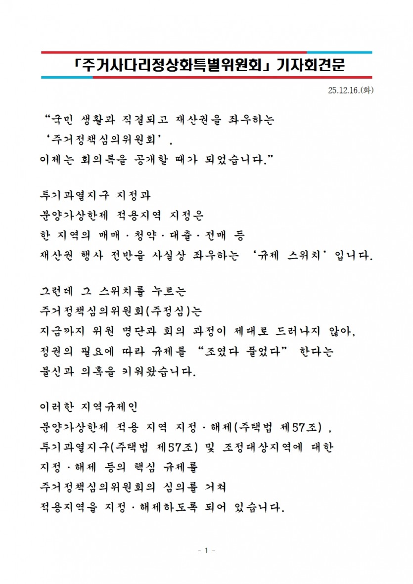 [기자회견] 주거정책심의위원회 회의록을 공개하라