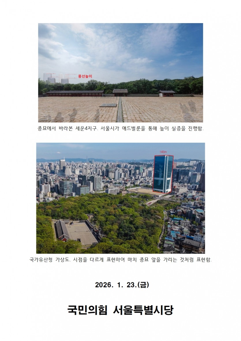 [논평] 김민석도 꽁무니 뺀 종묘 논란 더불어민주당도 그만 손 떼라