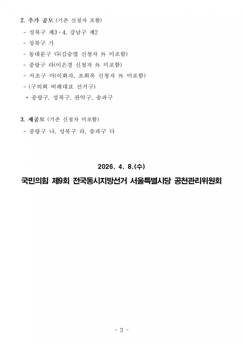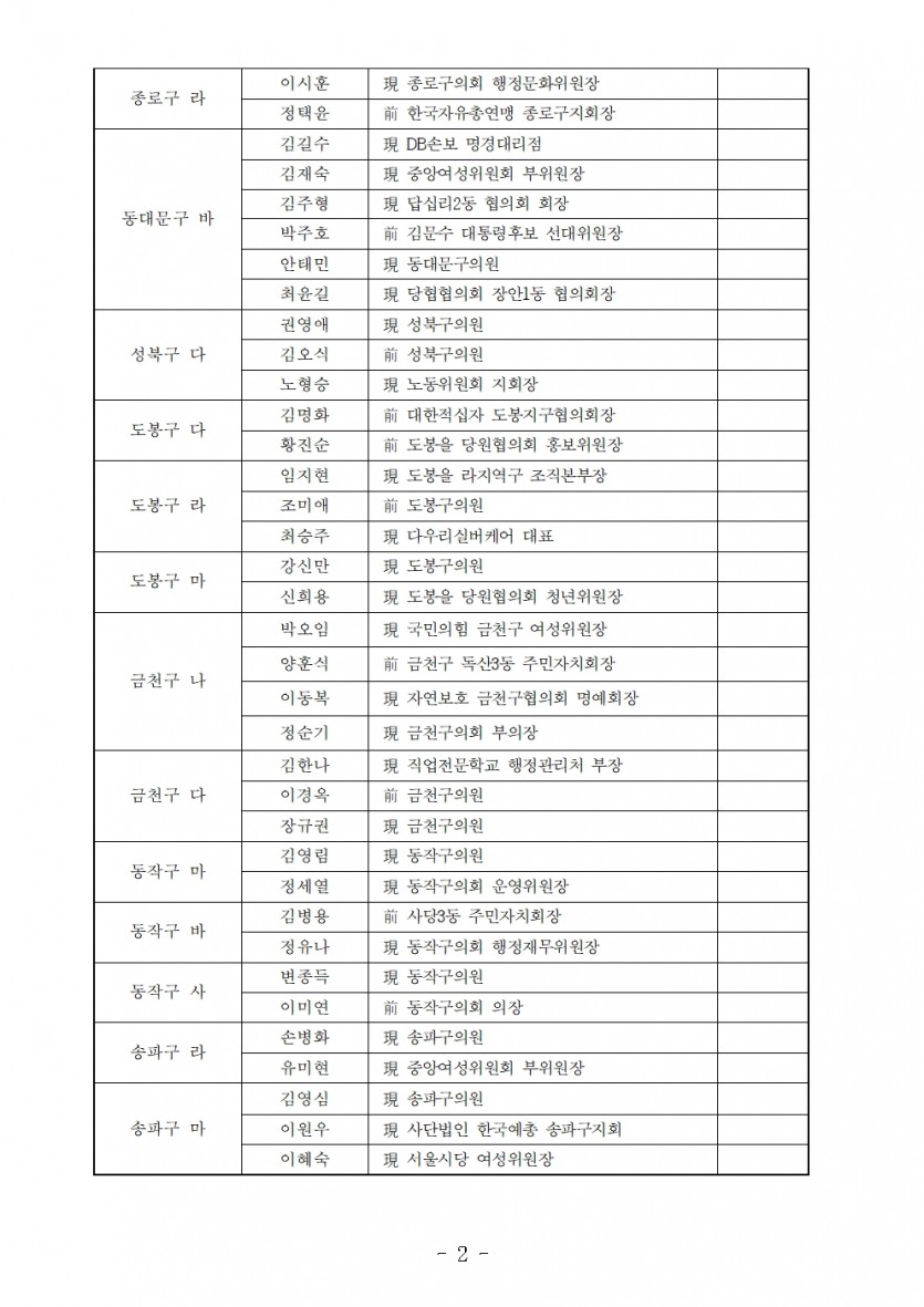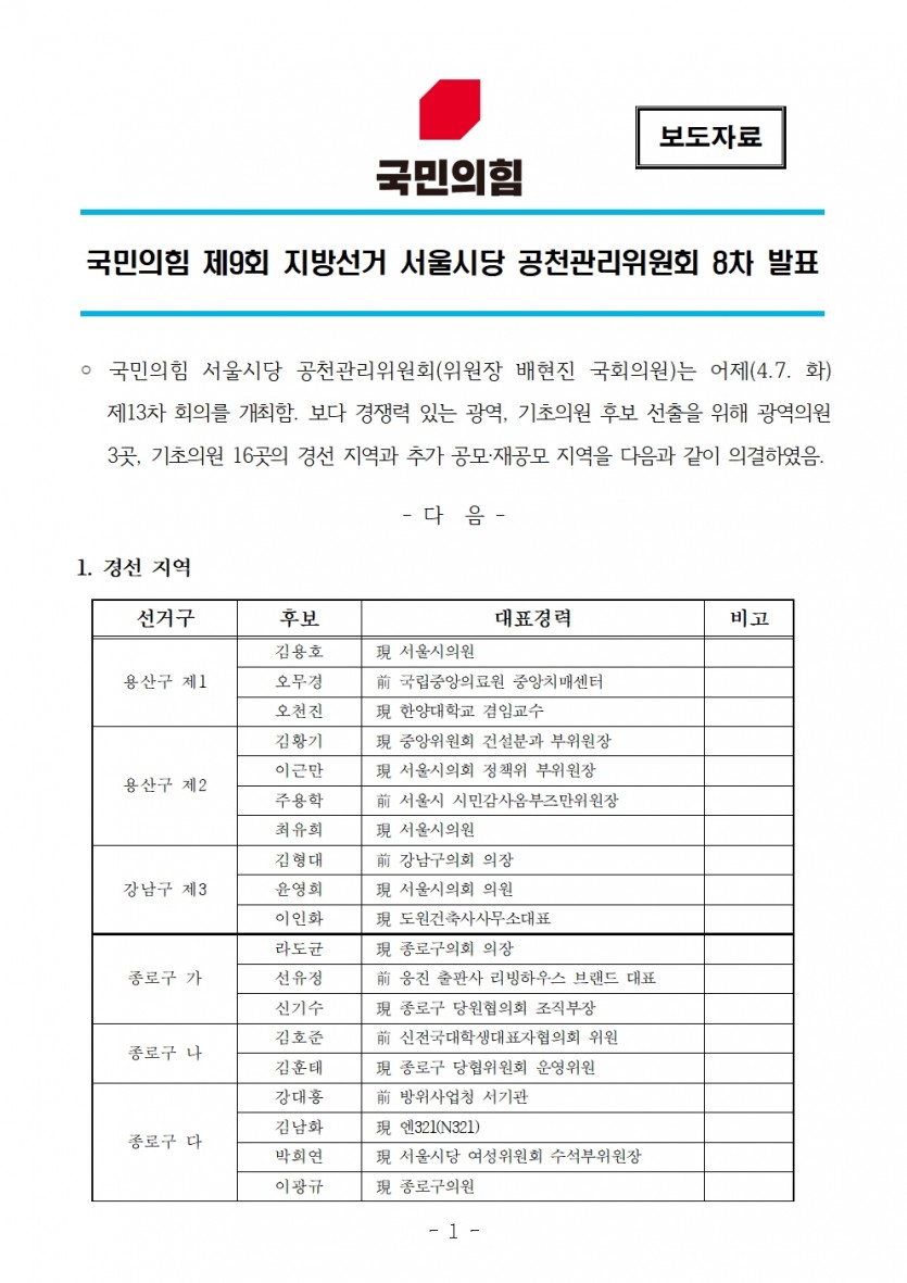 [보도자료] 국민의힘 서울시당 공천관리위원회 8차 발표