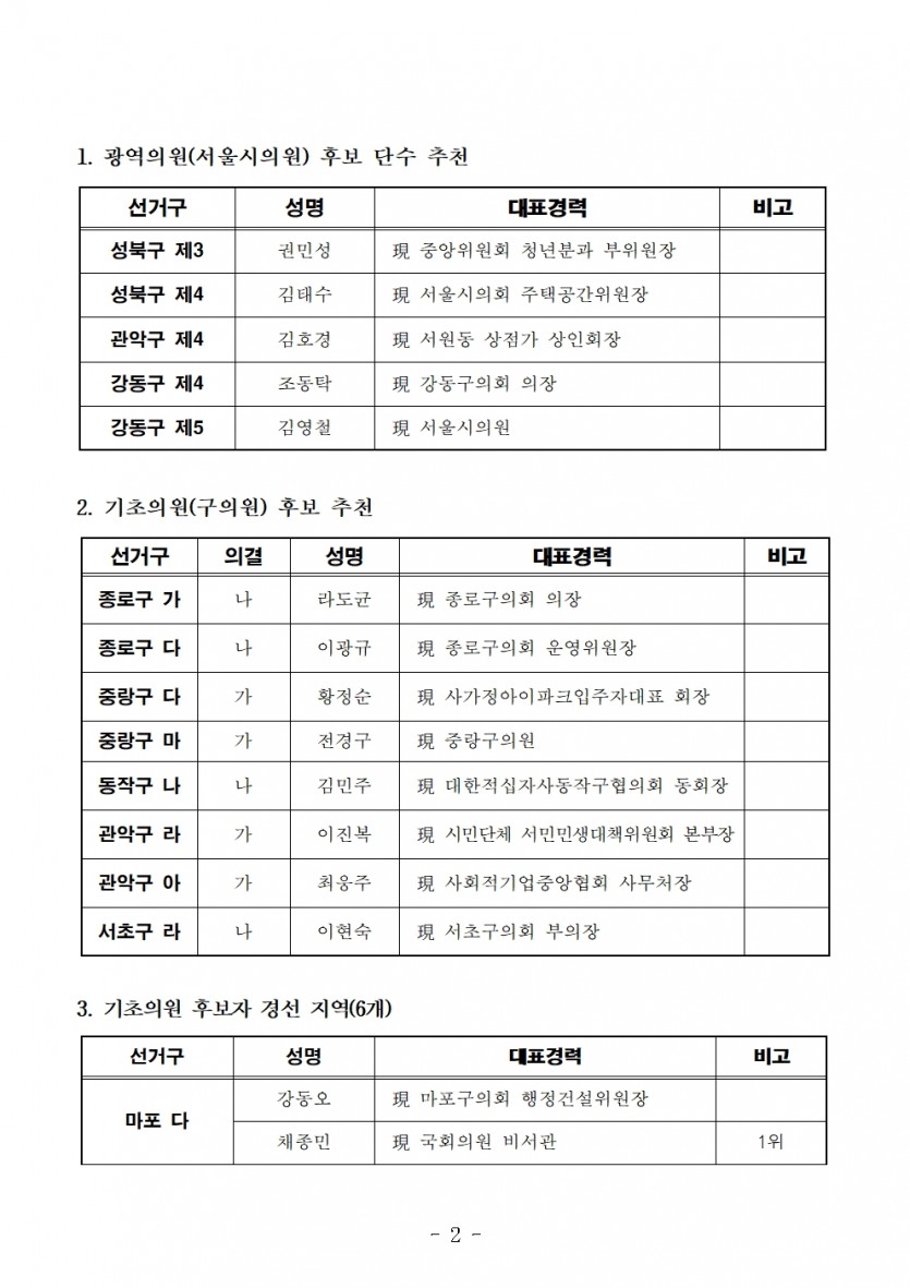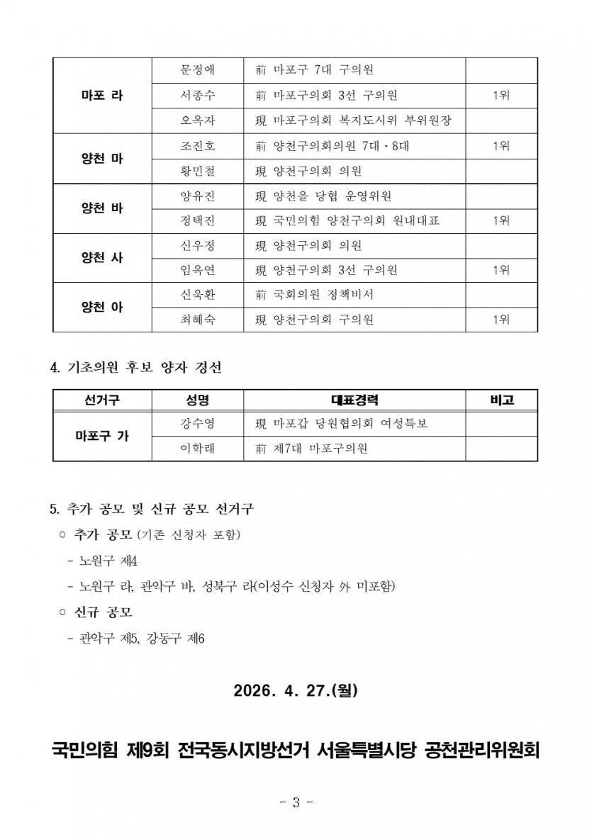 국민의힘 서울시당 공천관리위원회 14차 발표