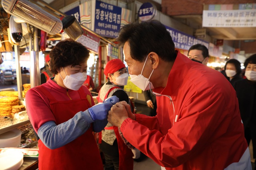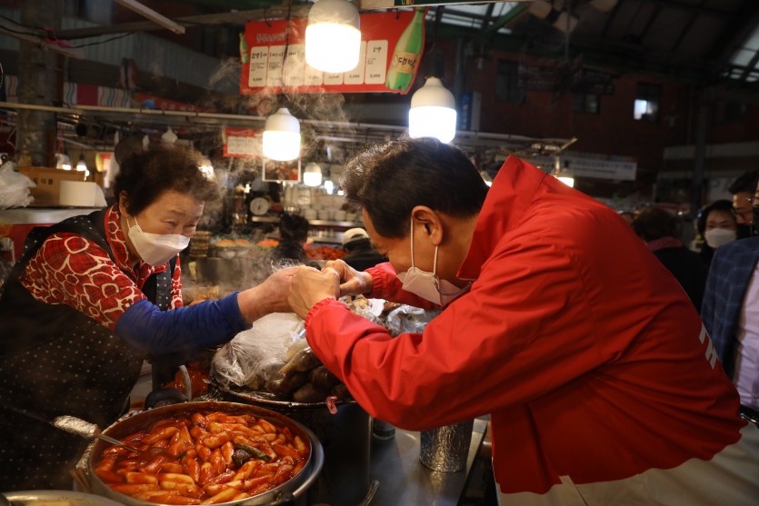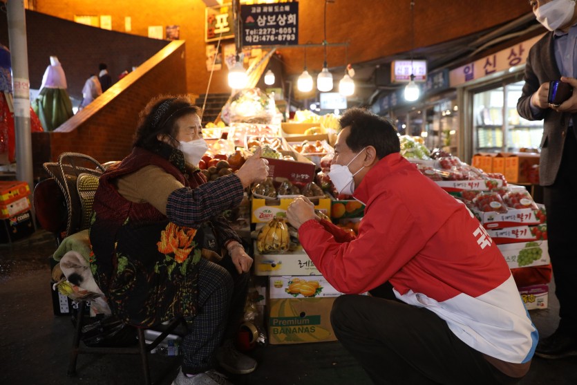 오세훈 국민의힘 서울시장 후보는 3월 20일(토) 오전 11시, 광장시장을 방문, 코로나19로 인한 경기위축으로 생계에 어려움을 겪는 소상공인을 찾아 위로·응원했다.